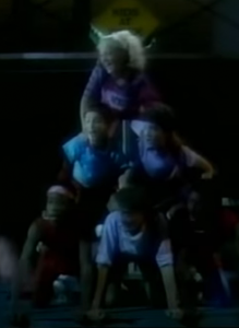 Everyone runs outside and performs the full theme song complete with gymnastics, a human pyramid and un-synchronized (that I think was supposed to be synchronized) break dancing.