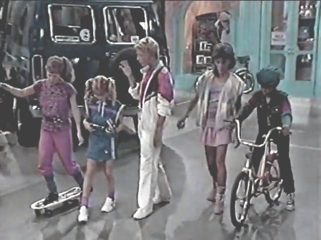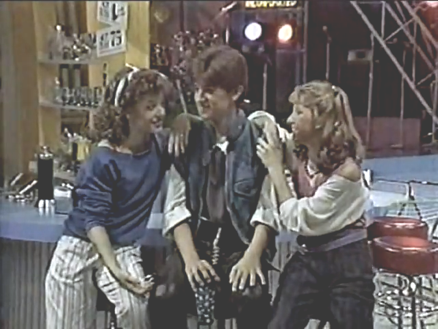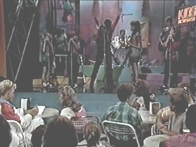 The first official episode of Kids Incorporated begins with what appears to be people out on the street working on a set of steps and reading a newspaper in the dark of the night. In the span of seconds, the lights come up and kids run into The P*lace as our heroes Kids Incorporated are performing a soundcheck.